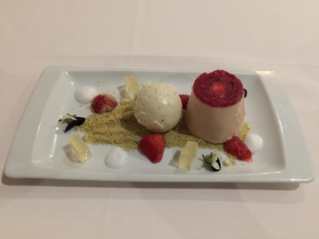 Mint shortcrust crumb, coconut foam, pressed strawberries, lemon gels, vanilla bean & indigenous strawberry gum.