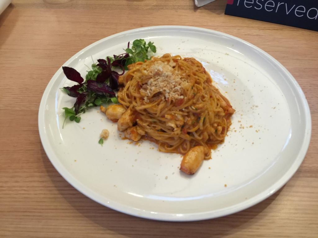 Crab-flavoured pasta is very common, but this is much better than usual. The pasta has a very smooth, strong seafood taste. The pasta is also square-shaped, not cylindrical. That's more interesting than it sounds.