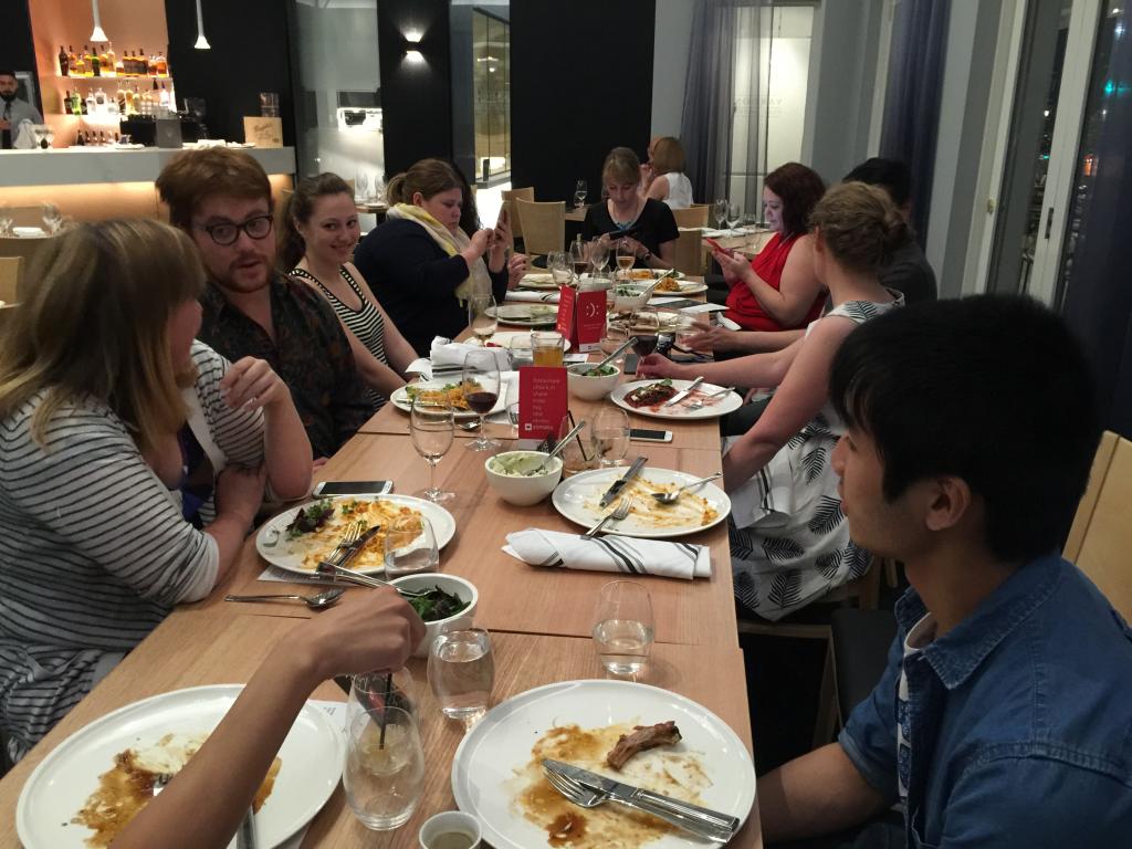 People are making small talk. Turns out other bloggers write their reviews later, not at the table. Strange…